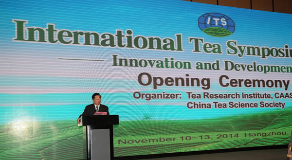 11月10-13日,2014国际茶叶学术研讨会在杭州隆重召开,此次研讨会由中国农业科学院茶叶研究所、中国茶叶学会主办,来自日本、印度、巴基斯坦、肯尼亚等23个国家(地区)的80多位外宾,以及国内高校和科研机构代表共300多人参加会议。11月11日上午,开幕式在中国工程院陈宗懋院士主持下举行。全国政协文史和学习委员会副主任、中国国际茶文化研究会会长、原浙江省政协主席周国富,中国农科院副院长吴孔明,中国农科院国际合作局局长张陆彪,浙江省科技厅副厅长曹新安以及省外办、省科协、浙江省中国茶叶流通协会和进出口商会等单位的领导出席开幕式。吴孔明副院长首先对会议的召开表示热烈的祝贺,他在致辞中强调,茶叶研究所担负着组织开展全国茶业科技协同创新和对外交流合作的重任,要以本次会议为契机,加强与国内外同行交流,深化合作层次,加强茶叶科技创新,促进成果转化,为我国茶叶产业的发展做出应有的贡献。