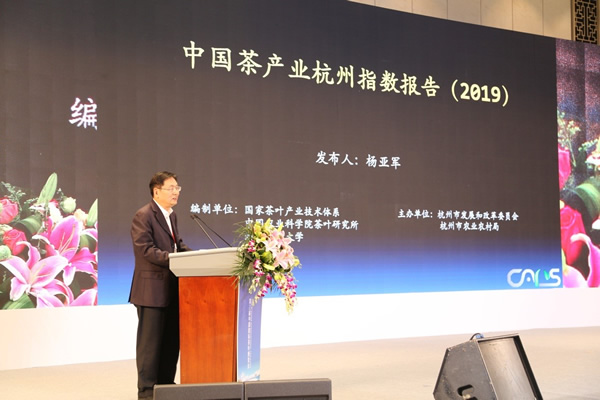 2019年5月17日,国家茶叶产业技术体系首席科学家、我所杨亚军研究员在“西湖论茶”第三届中国茶业国际高峰论坛上正式发布《中国茶产业杭州指数报告(2019)》。“中国茶产业杭州指数”是我国首个全国性茶产业综合指数,旨在通过以指数的形式描述和反映我国茶产业发展态势及市场变化趋势,为相关政府部门提供决策依据,为茶产业的生产、销售、上下游相关企业提供科学、量化的市场信息服务,促进中国茶产业健康持续发展。
