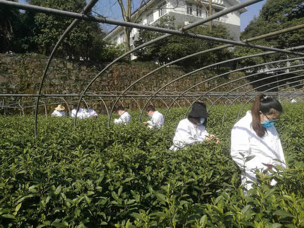 在了解到龙冠公司因疫情影响而面临采茶工短缺的困难后,研究所向全体职工发出积极投身茶叶生产,助力企业复工复产的号召。茶深加工与多元化利用团队党支部全体党员积极响应号召,主动与龙冠公司对接,在做好疫情防控的同时开展义务采摘,助力龙冠公司尽快恢复生产。