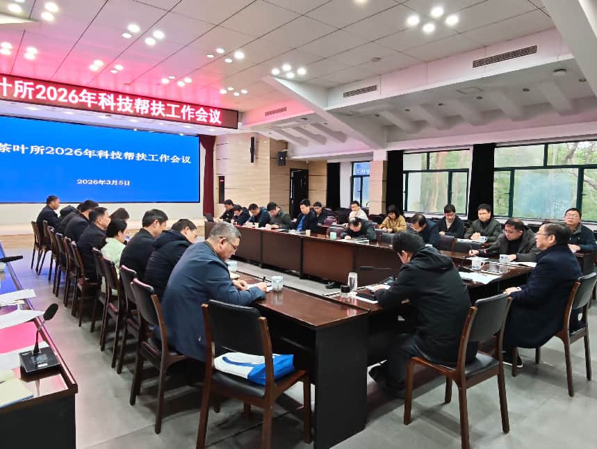 3月5日,我所召开2026年科技帮扶工作会议,全面部署2026年茶叶产业专家团、顾问组、科技特派员等科技帮扶重点工作。党委书记江用文,副所长姚明哲、肖碧林,产业专家团各工作站、顾问组、国家乡村振兴重点帮扶县科技特派团负责人,浙江省派个人科技特派员、团队科技特派员首席等参会。